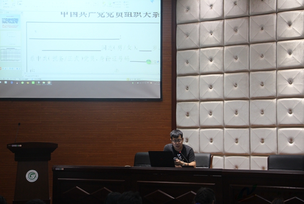 会上,徐金鹏老师首先强调了党组织关系的作用和重要性。然后徐老师耐心细致地为毕业生党员讲解了转接组织关系介绍信的方式,对毕业生党员组织关系转移工作进行培训,详细讲解了组织关系转移流程、介绍信的填写和注意事项等,并针对以往工作过程中遇到的特殊情况和存在的填写内容不规范等问题作了强调、解释和说明。 最后徐老师针对毕业生党员提出的问题做了详细解答。