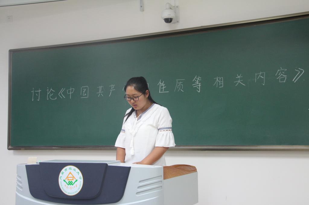 本次讨论课以《学习中国共产党的性质等相关内容》为题,帮助积极分子进一步了解我党性质。积极分子们经过查询资料,激烈讨论后有序上台发言,提出自己的见解。中国共产党是工人阶级的先锋队,同时是中国人民和中华民族的先锋队,是中国特色社会主义事业的领导核心,代表中国先进生产力的发展要求,代表中国先进文化的前进方向,在1935年12月,毛泽东同志就曾提出,我们党“不但代表了工农的利益,同时也代表了民族的利益”,“总括工农及其他人民的全部利益,就构成了中华民族的利益”。