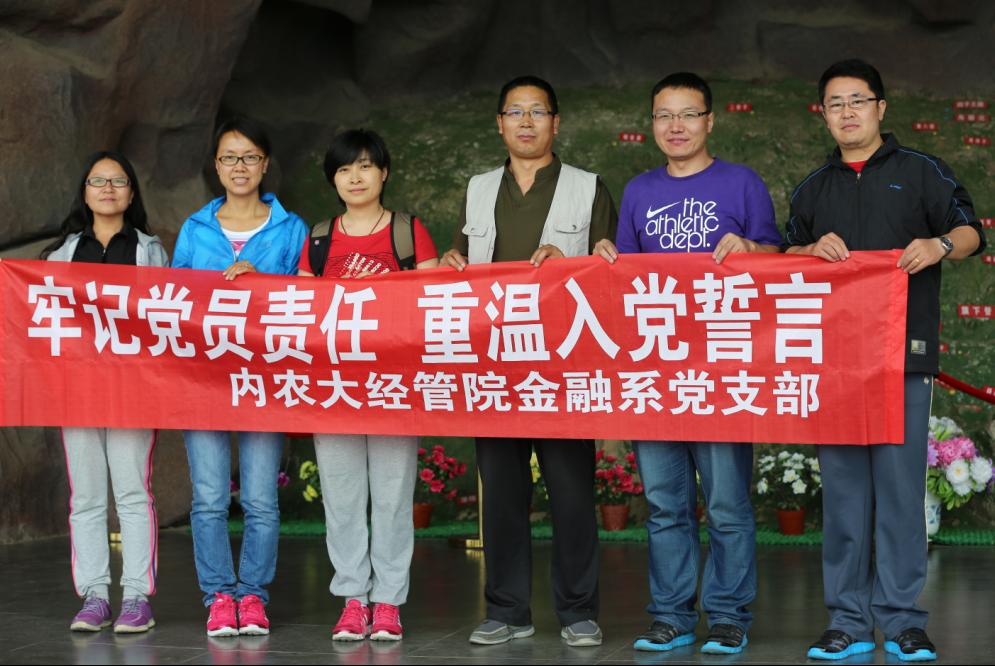 为深入开展党的群众路线教育实践活动,庆祝中国共产党成立93周年,6月28日,太阳成集团官方网站金融系党支部教职工前往大青山抗日革命根据地开展“牢记党员责任、重温入党誓言”的党日活动。参与本次活动的有金融学系党支部全体党员及入党积极分子。