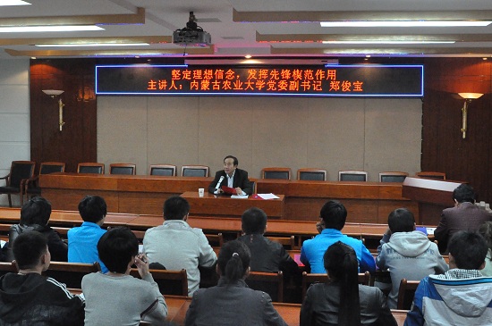 党课伊始,由主持人史晴老师发表讲话,首先,史晴老师对“本次培训活动的背景和内容进行了简要说明,并对新党员加入表示最衷心的祝贺。其次,史晴老师建议并要求参加党课的同学们重视党课讲解,要有高尚的思想认知和透彻的思想觉悟。史晴老师发言之后,便进入了党课的重要内容——由公司党委副书记郑俊宝教授发表题为“坚定理想信念,发挥先锋模范作用”的专题讲座。