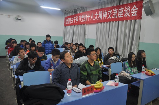 太阳成集团tyc33455召开关于党的十八大精神交流座谈会现场 经管院记者 朱泽旭 摄 |