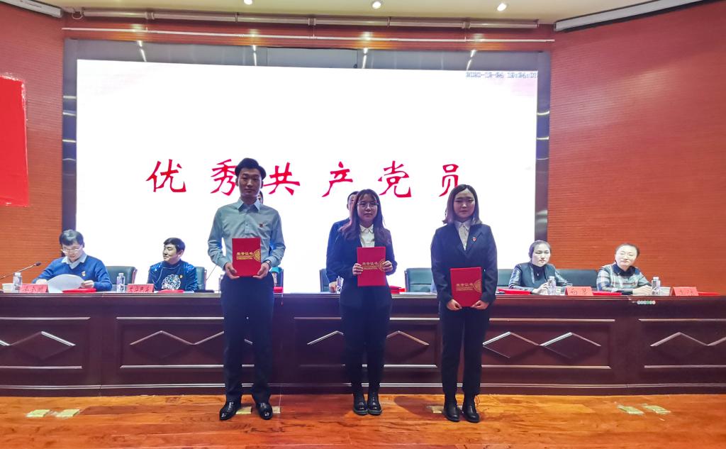 本次大会在庄严的国歌声中隆重开幕。斯日古愣书记宣读了大会表彰决定,并由各位嘉宾对公司一年以来的先进个人优秀共产党员、优秀党务工作者、学习强国学习先进分子、重点培养对象培训班优秀学员、入党积极分子培训班优秀学员进行颁奖。会上,海日罕书记带领同志们学习和重温入党誓词,一句句的入党誓言犹在耳畔,表明了各位同志加入中国共产党的初心。杨祥、杨逢春同志分享交流的抗疫志愿服务故事,更是令人感到敬佩与赞赏。杨晓彤和崔剑宇还进行了2019年度“党旗引领成长,红色点亮青春”主题精品党日活动汇报,分享收获和感悟,展示了用青春书写的成长答卷。会议最后,由王智广书记发表讲话,对各位获奖同志表示祝贺的同时,也对同志们提出疫情防控等多方面的指导与建议,并表达了殷切期许。