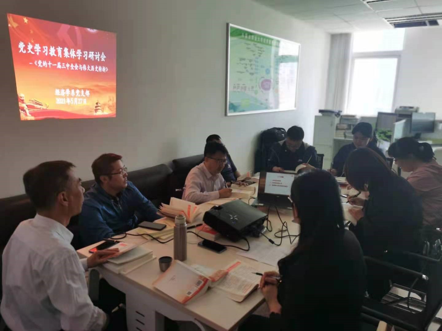 5月27日下午16:00在经管院618办公室组织召开了经济系党支部党史集体学习研讨会,会议由经济系支部书记徐玮主持,经济系支部每位党员参加了会议。