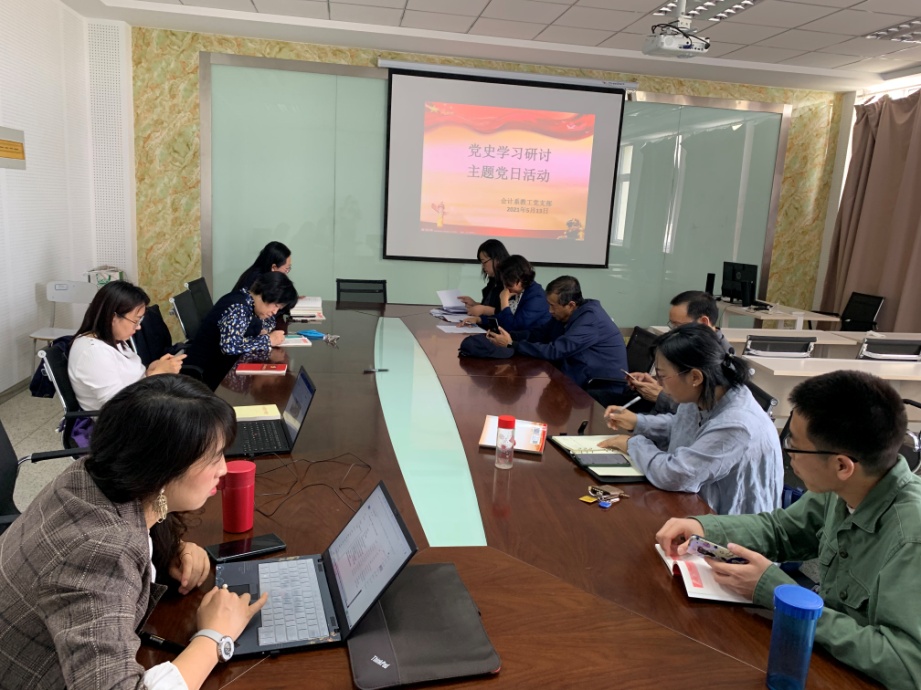 5月13日下午,公司会计系教工党支部于公司315会议室组织开展党史学习研讨主题党日活动。支部书记范文娟同志主持会议,会计系全体在公司党员教师参加了本次会议。