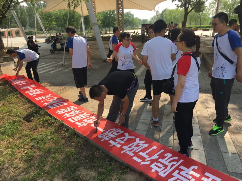 活动在庄严神圣、铿锵有力的宣誓中拉开帷幕。“我志愿加入中国共产党,拥护党的纲领,遵守党的章程……”,全体党员在王瑞梅老师的带领下庄严举起右拳,重温入党誓词,体现了党员们的庄严承诺和坚定决心,警示党员牢记共产党员的政治责任和历史使命,永葆共产党员的政治本色。随后,公司党委书记赵国年为教师党员们讲党课,他表示,在建党九十六周年之际,各党员要继续以深入开展“两学一做”学习教育为契机,贯彻学做结合的要求,强化“四个意识”,凝心聚力,务实重干;行政支部人员应继续坚持尽职尽责的工作态度,树立热心、细心、认真的窗口形象。他结合学习习近平总书记系列重要讲话精神,鼓励六位新进老师,希望他们在肩负起教师的职责的基础上,也要做好研究,继续提升自己,在推进“两学一做”学习教育实践中更好地发挥先锋模范作用。在拓展活动中,支部各成员手持冲锋枪,精神抖擞,整装待发。一声令下,激战开始,炎炎烈日也阻挡不了成员们的激情,敌我厮杀、灵巧闪躲,活动激烈进行,通过拓展活动,增强了团队意识,磨练了支部成员的心灵,更使支部成员体验了战争的残酷,让每个人更加珍惜今天来之不易的生活。