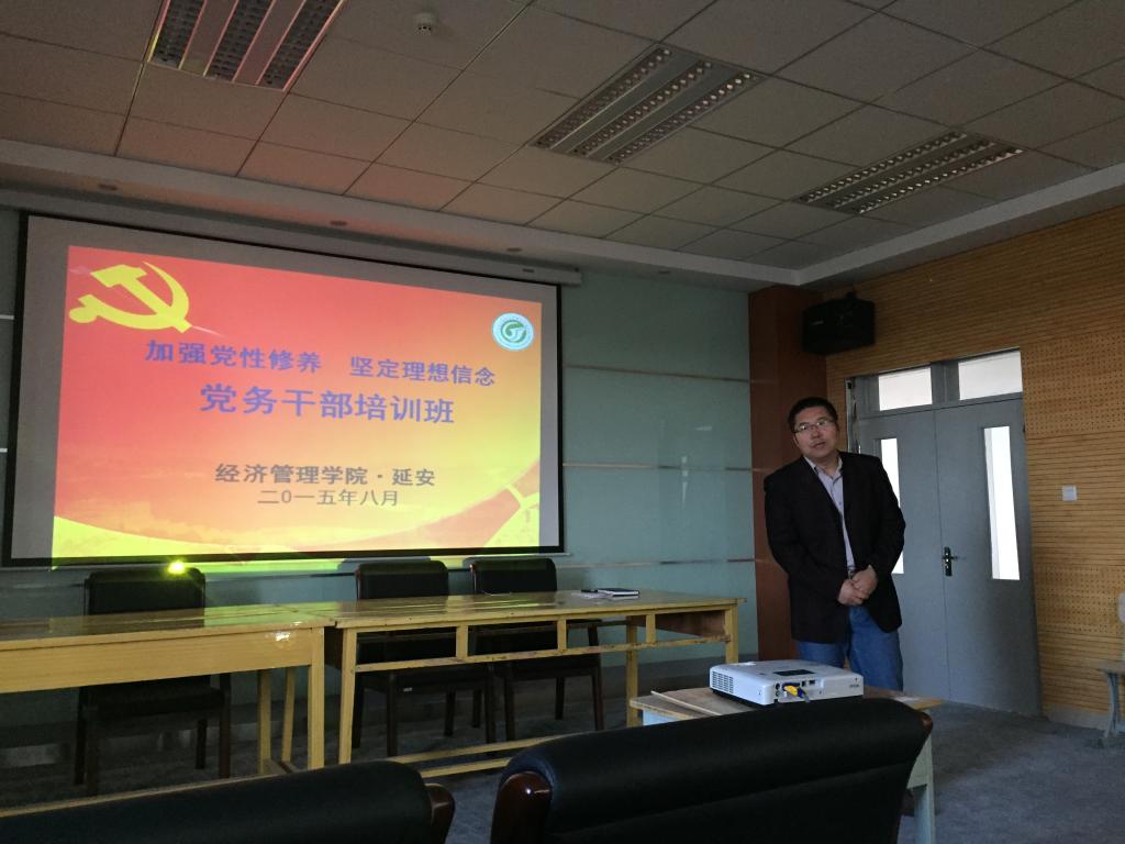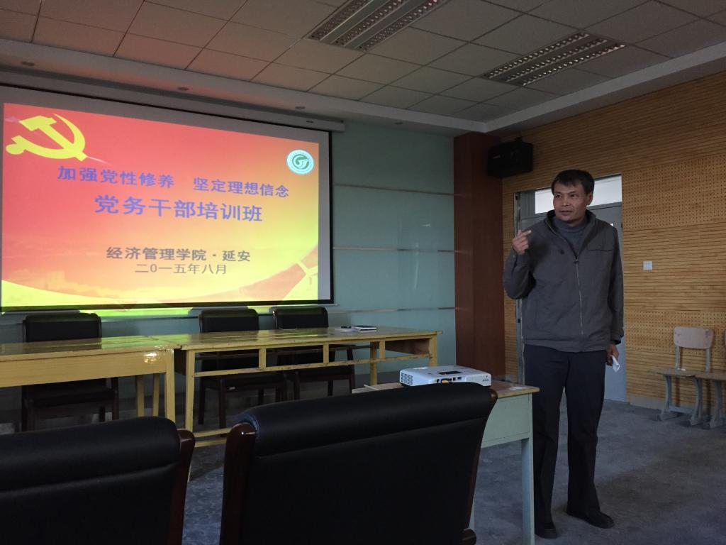 为更好的开展“三严三实”教育实践活动,提高党务干部的思想政治素质,经管院于8月25日—8月27日前往延安开展了党务干部培训班专题学习活动。2015年10月8日17:00,经管院于五楼会议室开展了党员学习日活动,公司党委书记赵国年汇报了培训班的学习情况,张建成老师和云冬老师分享交流了培训的体会。