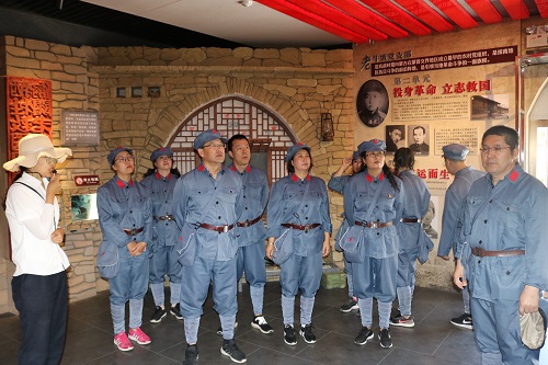在老牛坡党支部旧址和党支部展馆,大家跟随讲解员回顾了旧址所在位置以及四合院里所发生的可歌可泣的革命故事,使大家深深体会到,在战火纷飞的年代里革命先烈们秘密开展党的地下工作,表现出的共产党员为革命舍生忘死的高尚品质。最后一站,党员们到达老牛坡学员报告厅一同观看了《红色老牛坡》专题片,领会了老牛坡的老一辈共产党员在党的坚强领导下,用理想和信念、智慧和汗水、鲜血乃至生命铸就的革命热情和精神。