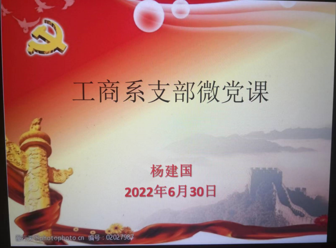 6月30日20:00,公司工商系教工党支部为“七一”献礼,以线上方式开展支部党日活动,支部书记杨建国同志为全体支部党员教师讲党课。