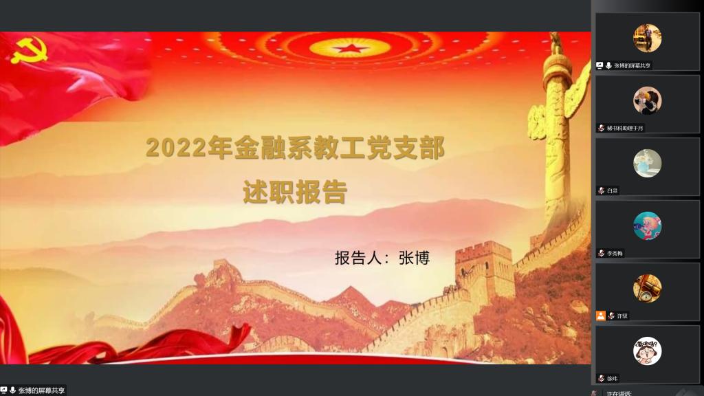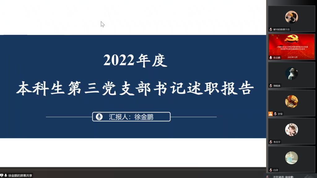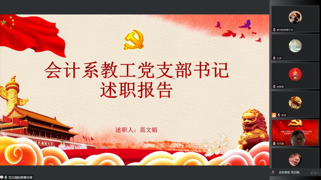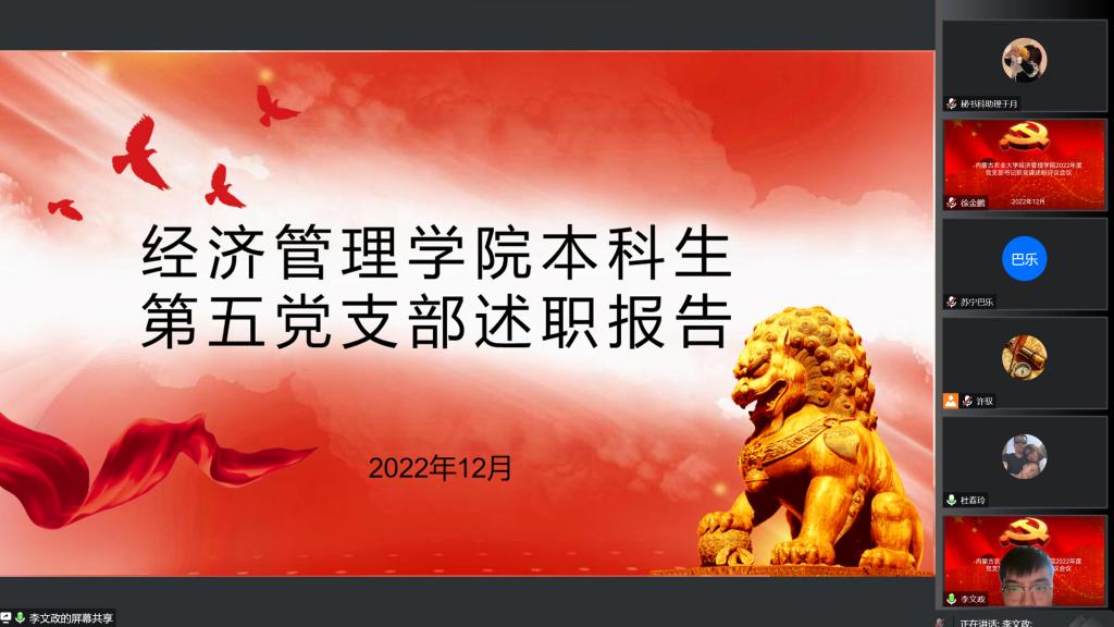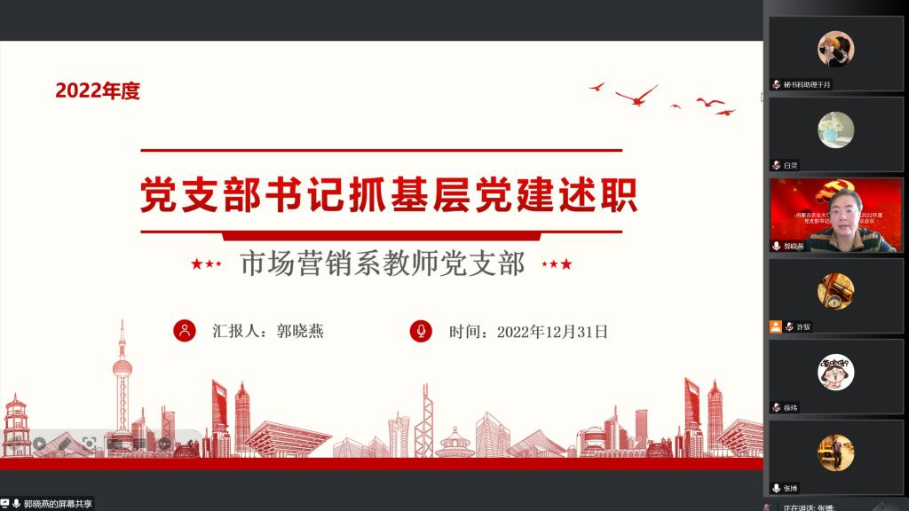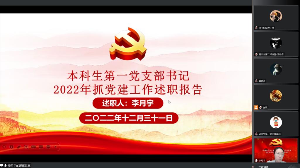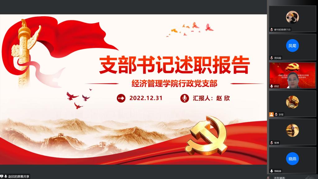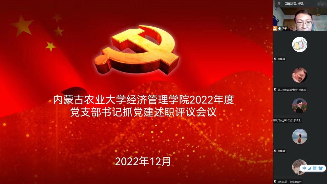 为进一步完善基层党建工作,加强党支部建设,响应全面从严治党号召,12月31日下午3点,线上开展2022年度党支部书记抓党建述职评议会议,公司党委委员、各党支部书记、师生代表参加述职评议会,会议由公司党委书记许驭同志主持。