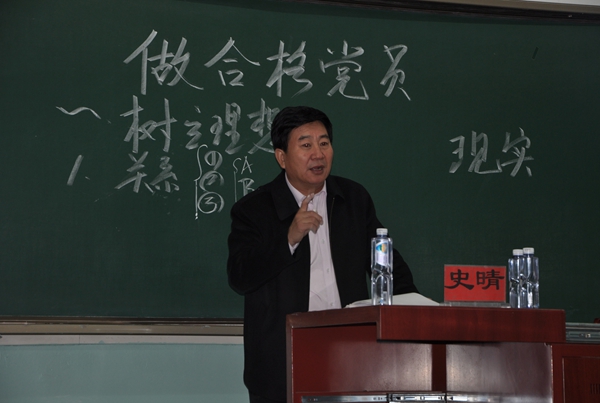 在庄严的国歌声中,在同学们热忱的目光中,培训会正式开始。本次培训的主题是“做合格党员”。史晴老师围绕该主题进行了三方面阐述。一、“树立理想”,阐述理想与现实的辩证关系、正确认识现实,才能够形成符合自身发展的科学理想、正确认识现实,才能实现理想。史老师重点介绍了科学理想的三大表现。二、“勤奋学习”,史老师提出了16字要求“认真求实、勤奋刻苦、虚心踏实、科学严谨”。三、“被人认同”,包括“认识自己、少说多干、辩证思维、真诚待人”。史老师以亲切的口吻,巧妙地联系生活实例,针对每个内容给出深刻的见解,引发同学们深思。在培训会结束之际,史晴老师送给大家一句话“认认真真学习,踏踏实实做事”。在同学们热烈的掌声中,培训会顺利结束。