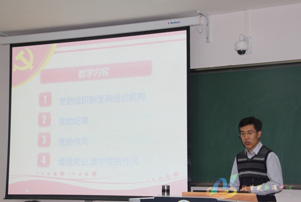 首先,赵云虎老师指出本次党课的主题是深入了解中国共产党的组织、纪律作风。赵老师向同学们阐述了本次党课的四大主要内容:一是“党的制度”,二是“中国共产党的组织机构”,三是“党的优良作风”,四是“我们应该怎么做”,并围绕这四大内容展开演讲。赵老师讲到党的制度时,生动形象地阐明了党的制度就是民主集中制,他强调了党的组织构成党的纪律以及纪律的重要性。课上,赵老师还指出党的纪律的基本特征是强调性、自觉性。赵老师精彩的演讲使大家更加坚定了向党靠拢的理想信念,并提升了学员们的自身政治素养。