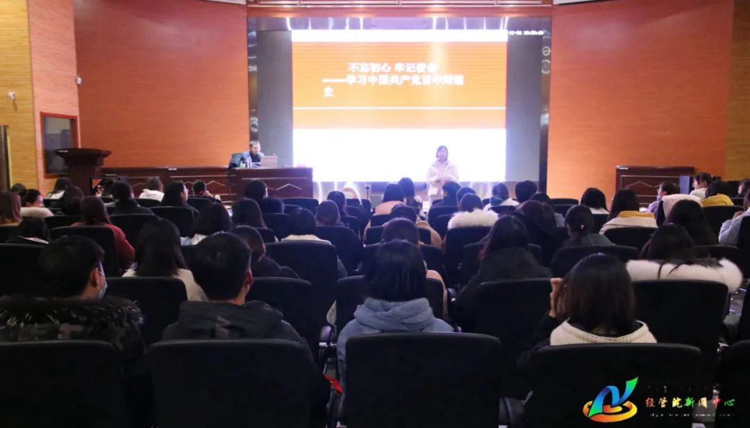 课上,王继成老师主要围绕“不忘初心、牢记使命——学习中国共产党百年辉煌史”的主题展开演讲。演讲内容主要分为四部分:第一部分,为什么学习中共党史,讲述学习党史的三个必然要求和三件大事及两个飞跃;第二部分,中共党史的基本脉络,讲述我党发展的几个重要阶段;第三部分,把握四史逻辑关系,讲述我党成功的经验做法和习近平总书记对百年党史的精辟总结;第四部分,中共党史的根本经验与规律,主要讲述我党成功的根本原因和经验启示。王继成老师总结到:“在全面建设社会主义现代化国家新征程上,高举习近平新时代中国特色社会主义思想伟大旗帜,不忘初心牢记使命,实现中华民族伟大复兴”。最后,由学办陈玉双老师对此次党课进行总结。