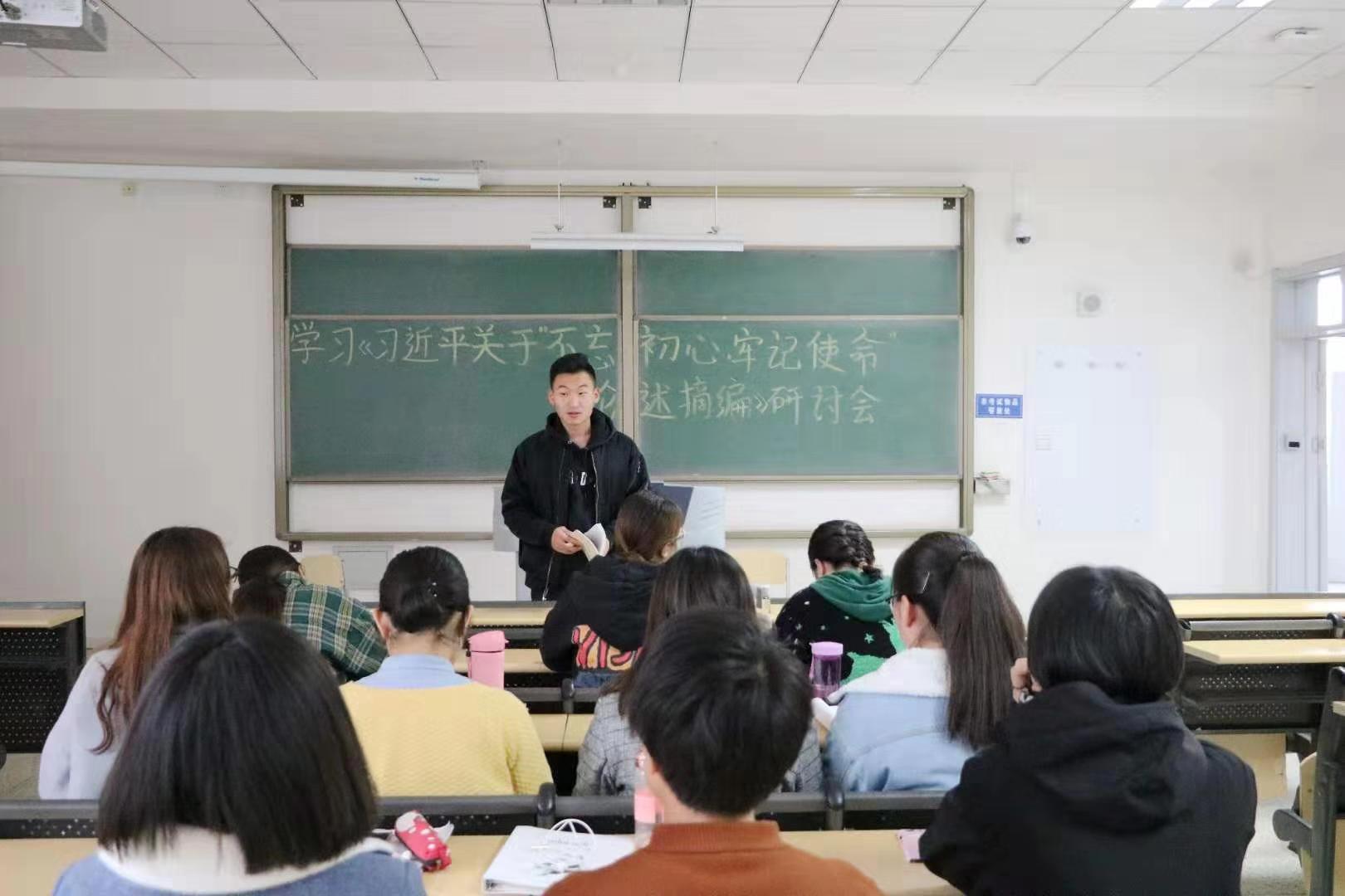 活动开始,各支部负责人介绍本次研讨会的主要内容,即:对《习近平关于“不忘初心,牢记使命”论述摘编》一书进行深层次的解读学习和讨论。紧接着,各支部开展了二十分钟的自主学习。在自学期间,同学们认真勾画重点,记录心得,积极主动的参与学习。自主学习过后,各支部负责人组织党员们进行分组讨论,交流心得与感悟,党员们积极发表见解。随后,各支部开始了轮流发言,发言过程中表达了对习近平系列讲话的支持与拥护,深刻领会习近平新时代中国特色社会主义思想精神实质,并且表示要以勇于自我革命的精神打造和锤炼自己,面向未来,面对挑战。