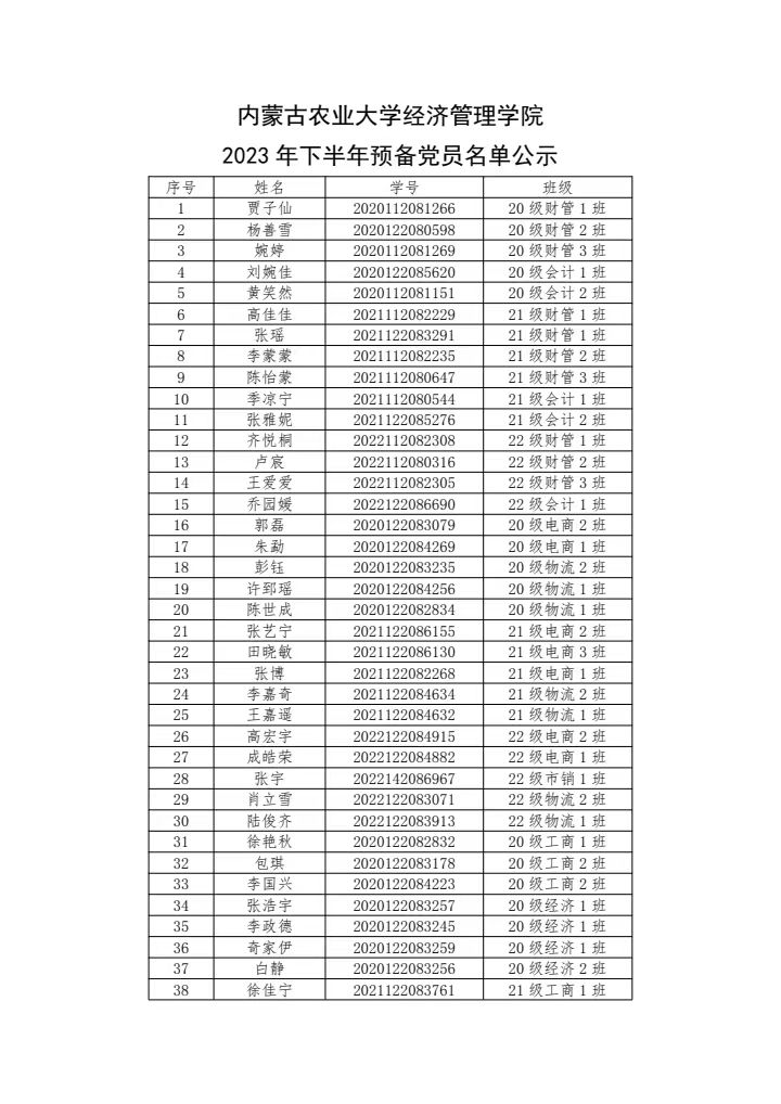 太阳成集团官方网站2023年下半年预备党员名单公示