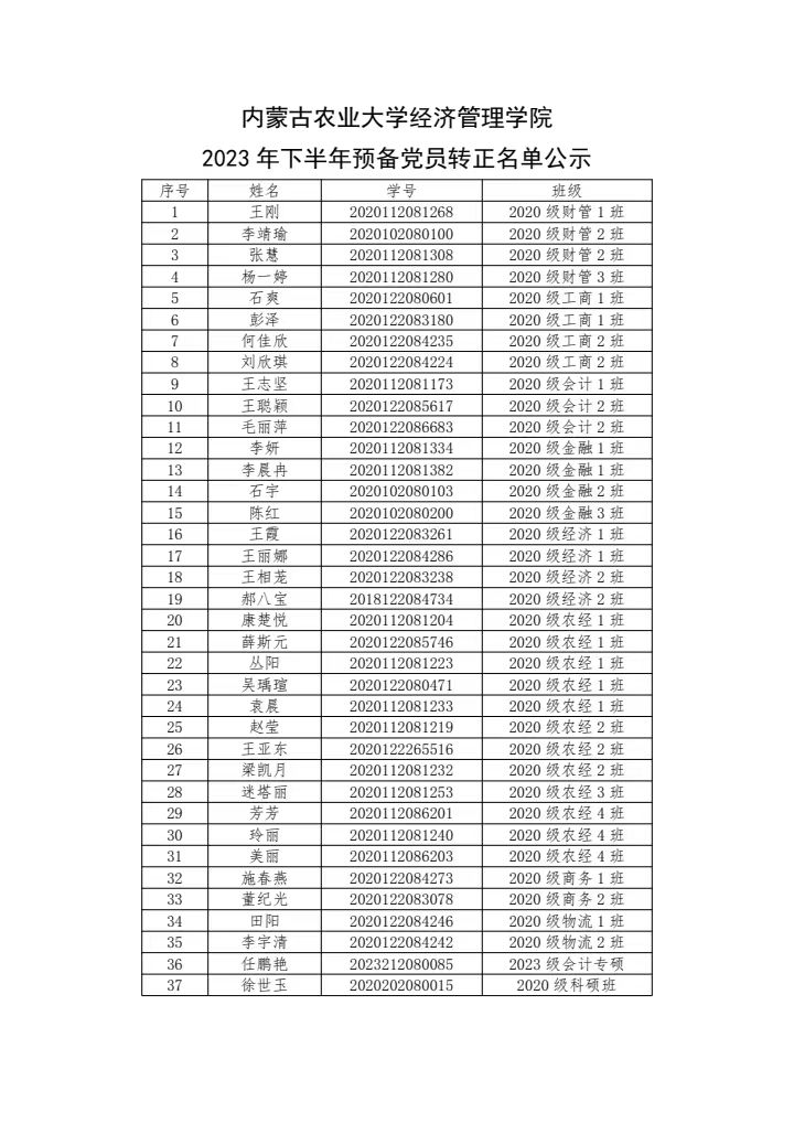 太阳成集团官方网站2023年下半年预备党员转正名单公示
