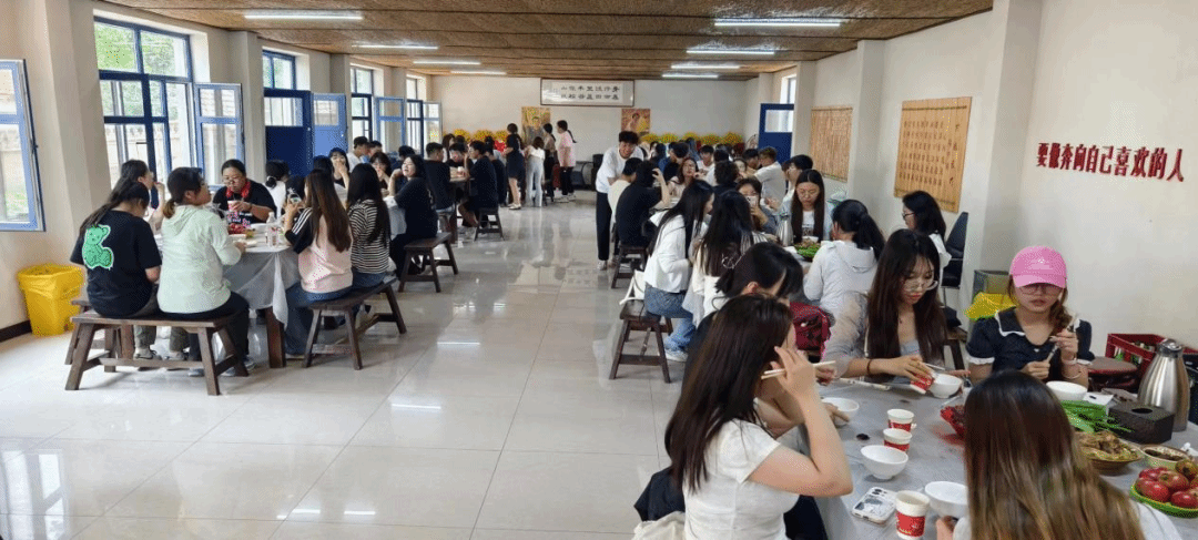 知青大食堂持续推进党建引领移风易俗,并推出特色菜品以促进农旅融合。同学们于大食堂内就餐,细细品味农家风味,切实领会知青大食堂推进农旅融合的深刻内涵,进一步促进现代农业和乡村旅游业的产业体系的建立。