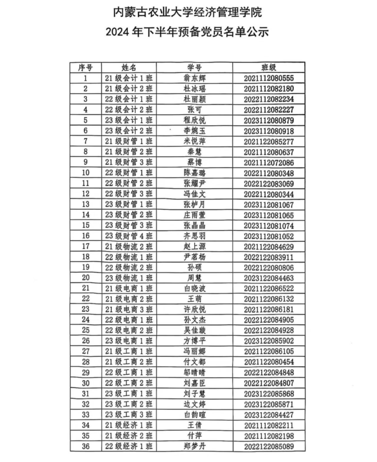 公司2024年下半年预备党员名单公示