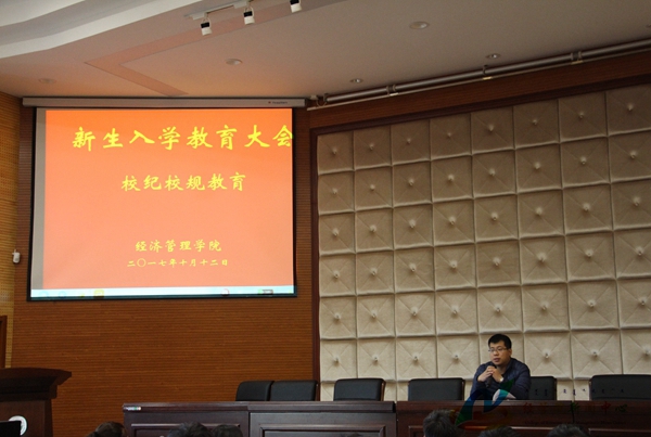 为进一步加强新生对校纪校规的认识,规范员工的自身行为,10月12日起,经管院分批次组织17级新生于公司123报告厅参加新生入学教育大会之校纪校规教育,会议由员工工作办公室副主任徐金鹏主持。