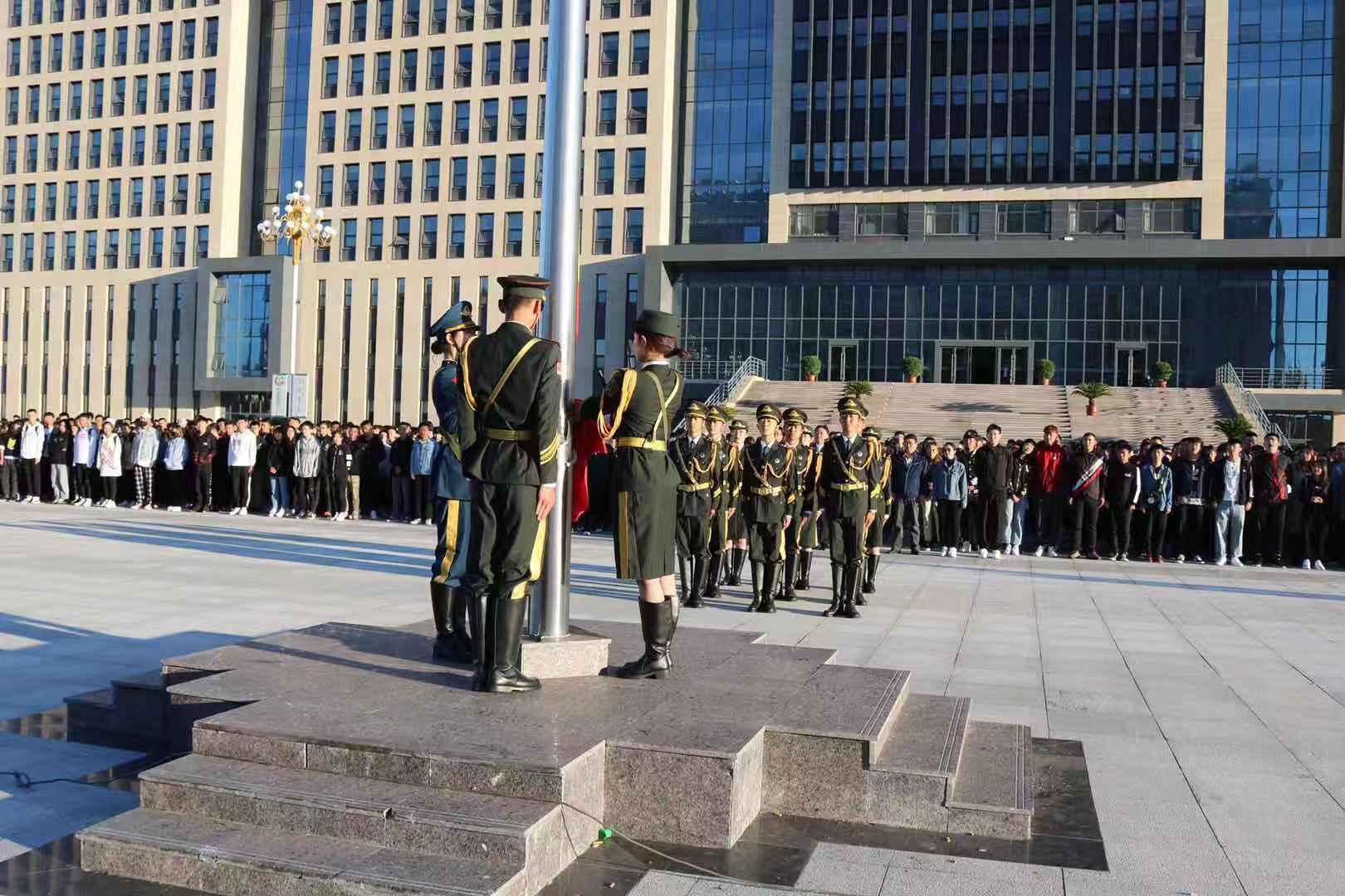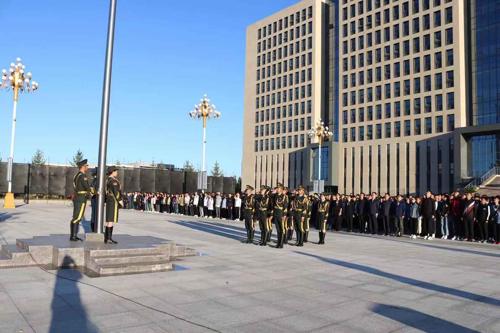 金秋九月,微风送爽。9月16日,正值公司2019级新生正式上课的第一天,为加强新生的爱国主义教育,提高爱国意识,激励同学们以弘扬爱国主义精神为己任,力求展现当代老员工团结进取、积极向上的精神风貌。上午7:00,公司2019级新生齐聚生科楼前,参加太阳成集团tyc33455新区第三周升旗仪式,公司党委副书记黄龙海,副董事长乔彪,员工工作处副处长白海林,公司党委副书记斯日古楞出席本次仪式。