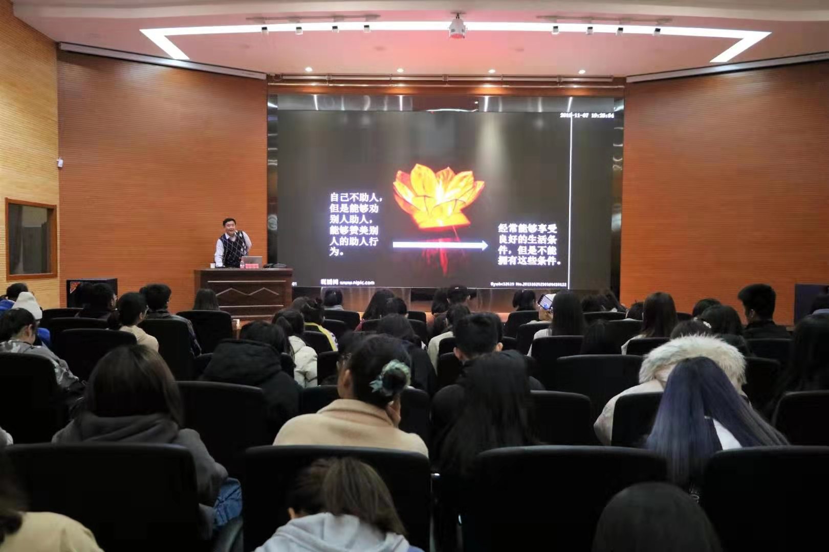 为培养员工健全的心理素质,优化个性品质和思想道德修养。11月7日晚7:00,公司于经管院123报告厅召开第四场2019级新生适应性讲座,公司老员工心理辅导与服务中心老师陶格森担任此次主讲,19级经济专业,农经、工商等专业五个班级员工积极参加。