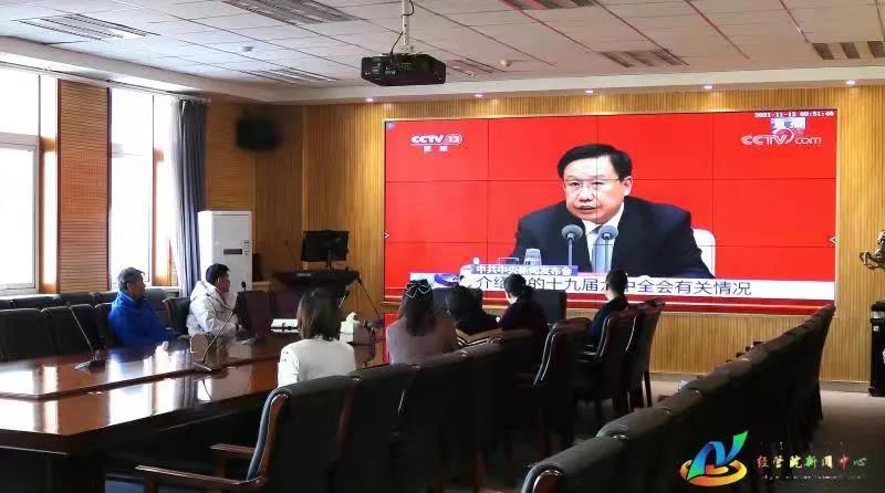 为深入贯彻党的十九届六中全会精神,全面落实习近平新时代中国特色社会主义思想。11月12日上午10:00,公司组织全体师生以线下、线上相结合的形式观看第十九届六中全会新闻发布会,学习领会全会精神。