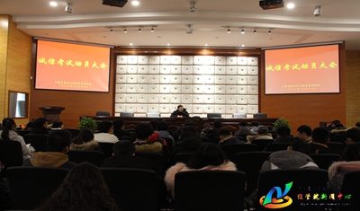 为提倡诚信考试,杜绝作弊,12月18日中午12:10,公司于经管院123报告厅举办诚信考试动员大会。本次会议由员工工作办公室副主任徐金鹏老师主持,公司各年级班长、团支书参加。