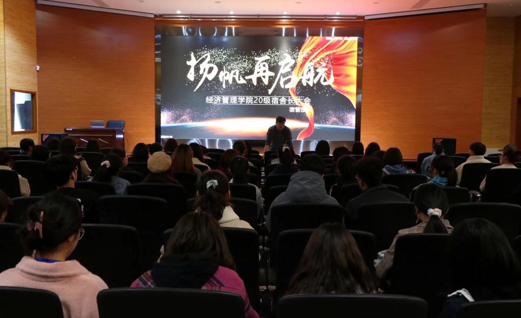 为规范员工宿舍管理,营造文明、和谐、舒适的宿舍氛围,3月11日中午12:10,公司于经管院123报告厅召开2020级宿舍长会议。公司员工工作办公室副主任苏宁巴乐主持会议,宿管部部长郭松熠、王湲、那仁满都拉及20级全体宿舍长积极参加。