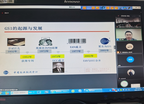 会中,梁栋老师从疫情疫苗如何保存的问题出发,引出GS1系统的相关知识,结合当下实例对冷链物流的未来实用性和意义对GS1系统、GS1与冷链物流两方面进行讲解。其中,他着重对冷链物流在农产品和果蔬类产品上的应用进行展示,并对爱尔兰鱼冷链物流系统、天津冷链物流系统和北京冷链物流系统进行案例分析,帮助员工进行进一步理解其理论内涵。张铎老师则从冷链物流的概念、技术应用、条码信息与GS1编码体系、国家冷链物流大数据云平台四个阶段进行讲述,以微信自助结算时可能出现的条形码无法扫描现象趣味性引入条码的相关知识,强调其对编码体系的基础性。会后,贾凤菊老师对全国老员工条码自动识别技术知识竞赛进行介绍,鼓励同学们积极参与,在不断实践学习中提高自身的学术水平和综合素质。