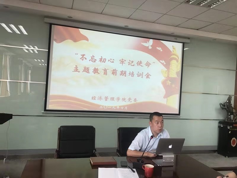7月9日下午5:00,经管院于公司519会议室召开“不忘初心,牢记使命”主题教育前期培训会,会议由公司党委书记王智广主持,党委副书记斯日古楞及各教工、员工党支部书记参会。