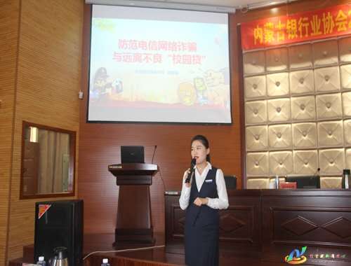 活动伊始,内蒙古银行业协会副秘书长戴生耀致辞。他讲到,金融是现代经济的核心,不仅关系到国家的生存发展,也紧密的关系到群众的日常生活。了解和掌握金融知识对于老员工来讲不仅是提升综合素质及增强防范意识的需要,更是适应社会及未来自身发展的需要。随后由业兴银行包头分行赵佳俊讲师就防范电信诈骗和校园贷等内容进行宣讲。赵佳俊讲师详细地为同学们讲解了什么是电信网络诈骗,电信网络诈骗常采用的手段以及如何防范电信诈骗,同时她还讲到关于校园贷等方面的种种陷阱。宣讲过程中赵佳俊讲师以有奖问答的形式向同学们提问以加深同学们对于此次宣讲知识的理解,同学们纷纷表示受益匪浅。接着中国建设银行呼伦南路支行吕倩讲师就支付安全和个人信息保护,个人征信等内容进行讲解。她提到,同学们应该注意银行卡的使用方式,防止不法分子盗刷信用卡。还要注意保护好自己的个人信息,谨防被不法分子利用,并且注意二维码的使用安全。