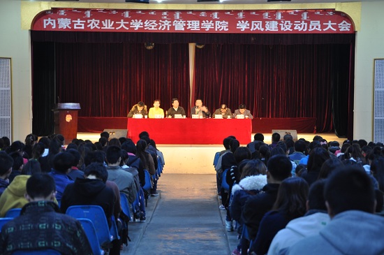 4月11日下午7:00,经管院于东区礼堂召开了学风建设动员大会,经管公司党委书记高潮、经理修长柏、副书记赵国年、副经理曹建民、学办主任高兵、团委书记张卫中、学办老师徐金鹏和11级全体员工参加了此次大会。