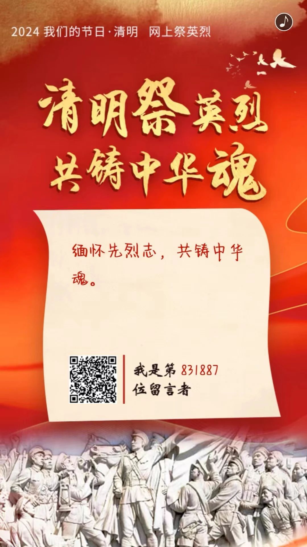 为传承和发扬先烈无私奉献的革命精神,培养担当起民族复兴大任的时代新人,4月4日,公司组织全体员工于线上开展“清明祭英烈,共铸中华魂”主题活动,同学们积极响应,以献花和留言的方式缅怀革命先烈。