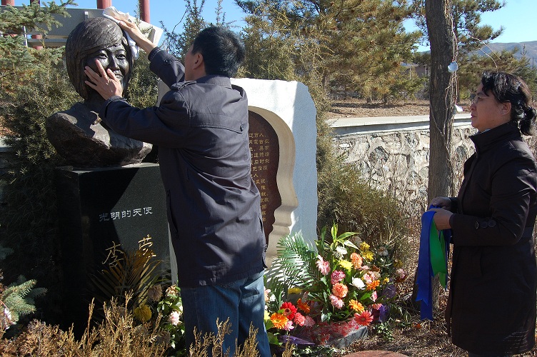 生如夏花之绚烂,死如秋叶之静美。这个清明时节,我们再一次挥泪祭英杰,再一次缅怀离我们而去的李莹学姐。爱和奉献是李莹学姐留给我们的精神财富,她的伟大精神与感人行动激励着生活在美好老员工活中的我们奋斗拼搏,积极向上。光明天使李莹用实际行动诠释了当代老员工的靓丽风采,她的坚强与执着感动着我们,看得出,李莹父母也为拥有这样一个优秀的女儿而感到骄傲。在今天这样冷风瑟瑟的日子里,当李莹父母以及我们每一个人站在李莹的墓碑前时,每个人的眼中都泛着泪花,心中怀着深深的怀念之情。师生们为李莹献上了一束束菊花,并在她的墓前深深鞠躬以表达我们的怀念与崇敬之情。