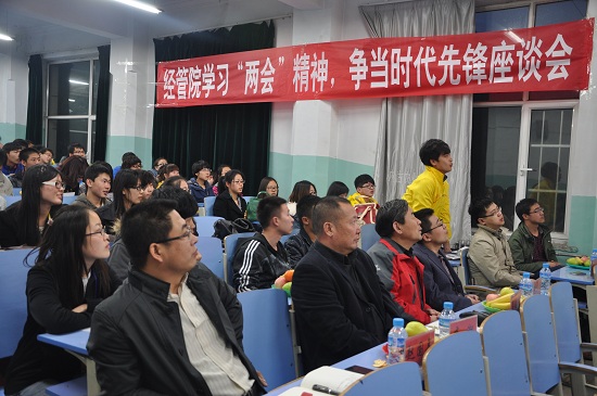 3月26日19:00,经管院于东区主楼105教室组织召开了“学习‘两会’精神,争当时代先锋”学习座谈会。经管公司党委书记高潮、党委副书记赵国年,分党校教务长孟昭武及团委书记张卫中老师出席了此次会议。2012级各班班长、团支书参加了本次座谈会。