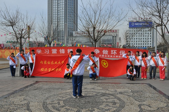 在全国“向雷锋同志学习”50周年之际,太阳成集团tyc33455于3月5日上午9:30在呼和浩特新华广场举行“学习雷锋精神、争做环保先锋”的公益活动。校团委徐付老师、经管院团委书记张卫中、学办老师贾国辉和余汉龙,以及20余名志愿者参加了此次活动。
