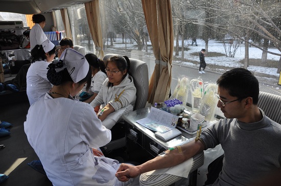11月23日上午10:30,经管院员工会社团部协助内蒙古自治区血液中心于东区食堂小广场组织了爱心无偿献血活动。公司团委书记张卫中,院办老师闫文彬,学办老师贾国辉、银虎、余汉龙来到现场进行指导工作。