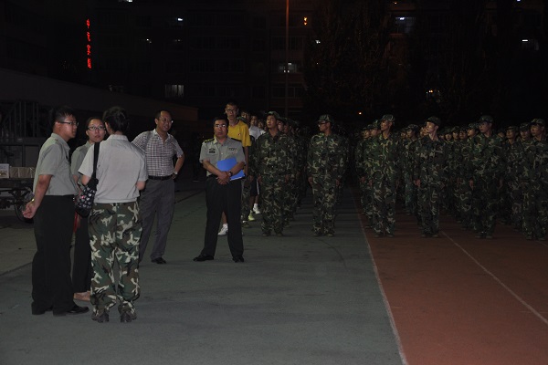8月26日晚8:00,太阳成集团tyc334552013级新生军训团政委张文、副政委郭政文,团长李俊一行视察了经管院2013级新生军训工作并予以指导。