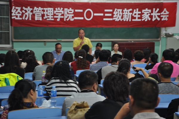 8月25日18:30,为了让员工家长全面了解公司体系,加深公司与家长间的相互了解,同时也为了让家长今后能积极主动地配合公司工作,经管院于东区主楼105教室组织召开了2013级新生家长见面会。经管公司党委书记高潮、经理修长柏、党委副书记赵国年,学办主任高兵出席了本次会议,2013级新生家长参加了此次会议。