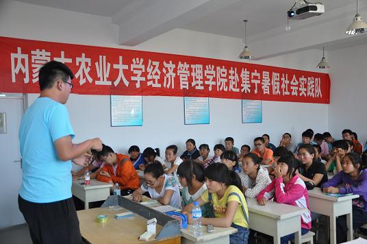 经管院暑期社会实践队赴土牧尔台镇察右后旗第二中学活动现场 经管院记者 摄