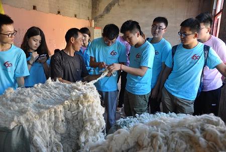 上午,实践队员来到了当地的鑫源羊绒加工厂生产车间,经过技术员的介绍我们了解了羊绒的生产过程及工序,羊绒加工企业是当地的支柱特色产业之一,通过参观工厂让实践队员们深刻体会到了农村工作条件的艰苦,让队员们体验了基层生活的不易,更加贴近社会。