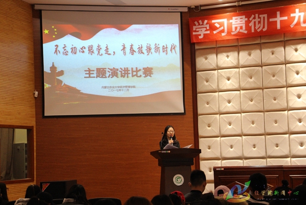 为更好的学习宣传党的十九大精神,深入贯彻习近平新时代中国特色社会主义思想。12月6日晚7:00,经管院于公司123报告厅开展“不忘初心跟党走,青春放歌新时代”主题演讲比赛决赛。公司团委书记海日罕,员工工作办公室老师郭祎天、刘雪佳担任此次比赛评委,MPAcc学员及17级部分员工参加观看此次演讲。