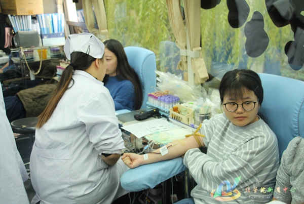 初冬的寒气并不能抵挡不住同学们献血的热情,活动得到了公司员工的积极响应,其中也不乏其他公司员工。临近11:00时,已有大批员工前来献血,采集登记处的队伍宛如一条“长龙”。认真布置的现场,暖心的服务,热心的讲解让同学们感到十分温暖,他们当中,有的初次献血,有的已献血多次,但脸上都洋溢着助人为乐的笑容。在志愿者与工作人员的帮助下,填表、化验、抽血有条不紊地进行着,工作人员不断提醒着献血后的注意事项,还为同学们准备了红糖水,献血队伍随着下课铃声不断拉长。