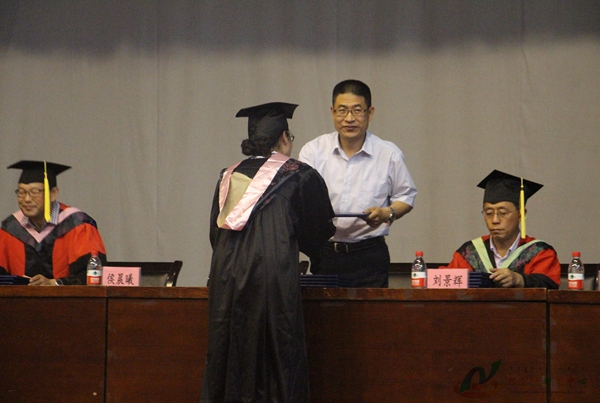 在雄壮的国歌声中典礼拉开帷幕,公司乔光华经理宣读学位授予决定后,各位毕业生轮流走上台,乔经理为毕业生们一一拨正流苏,主席台就座领导为毕业生颁发学位证书。毕业生们分组合影留念,眼中满是不舍与感动。来自农公司的毕业生代表冯浩做了发言,他表达了对母校、师长、父母及同学朋友的感激之情,他表示会用行动证明自己,也呼吁所有毕业生坚持不懈,向着自己的目标前进。公司王芳教授以诙谐幽默的演讲方式,将同学们的老员工活串联起来,引起现场同学们的共鸣和热烈掌声。她提出了三个问题:我是谁?我从哪里来?我要到哪里去?她告诫同学们要牢记自己的责任与使命,心怀梦想,热爱学习。公司党委副书记侯晨曦做了最后的总结发言,对即将踏上新征程的毕业生提出了四句箴言,一是梦藏心中,习近平总书记用中国梦作为所有中华儿女的精神支柱,各位同学要将自己的梦想作为前进的动力,有梦想的人一定走的更远;二是德为根基,先做好人,再做好事;三是做是关键,农大的学子应有五“实”精神,即朴实、踏实、诚实、务实、求实;四是协同惜伴,既不要妄自菲薄,更不要妄自尊大,要时刻牢记责任先于自由,义务先于权利,群体高于个人,和谐优于冲突。最后,他祝愿各位毕业生前程似锦,万事顺利。毕业典礼在全场师生深情嘹亮的校歌声中圆满落幕,优美激昂的旋律在文体馆上空久久回荡。