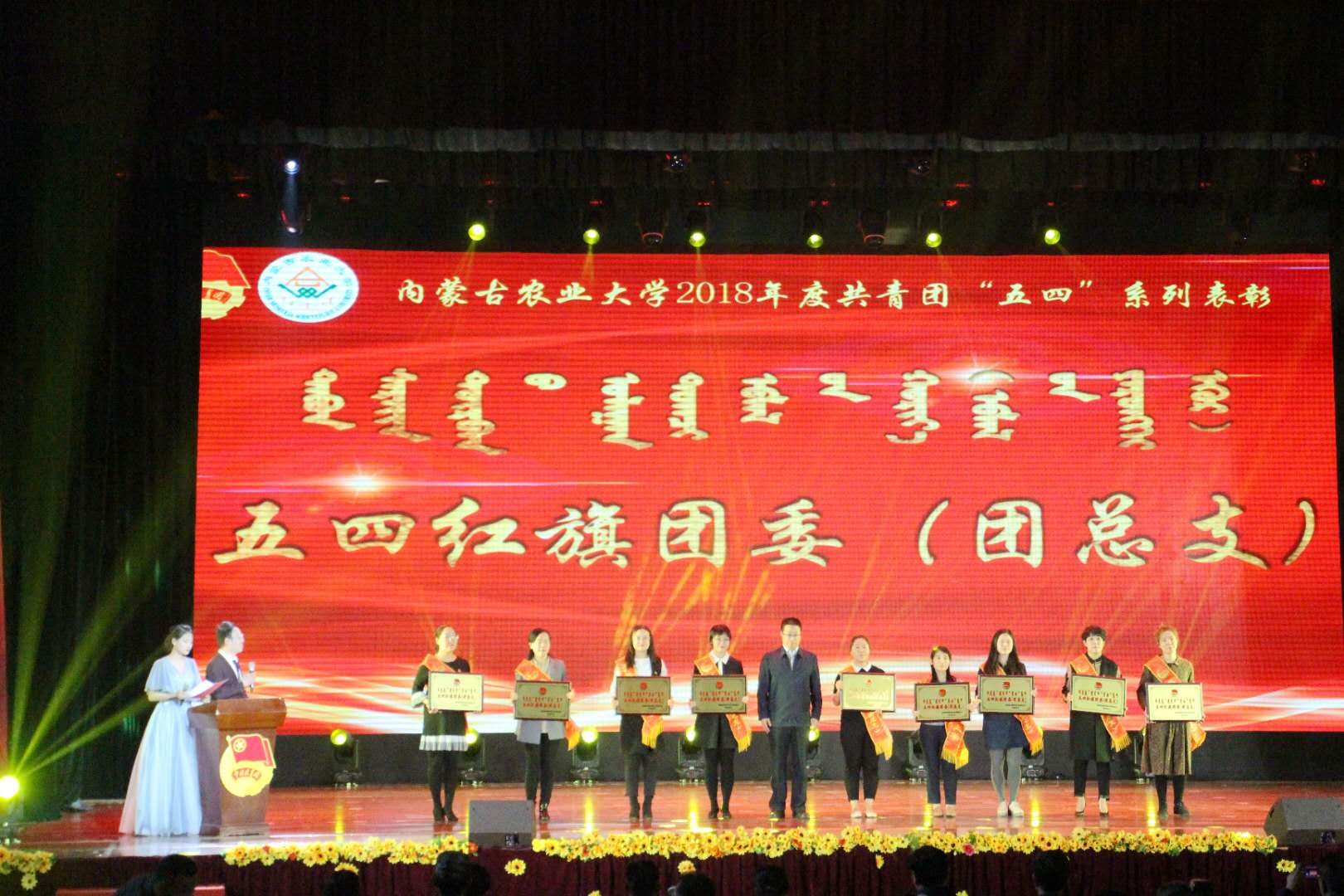 在表彰环节中,公司团委荣获校“五四红旗团委”,团委书记海日罕老师获“优秀团干部教师”荣誉称号。同时,公司多位同学和集体因工作成绩突出受到公司的表彰,16级农经S1班、17级财务管理一班被评为五四红旗团支部,16级会计1B1班、16级经济一班被评为学业进步先进团支部,韩佳莉等同学被评为优秀员工团干部,李秋实等同学被评为学业进步先进个人。