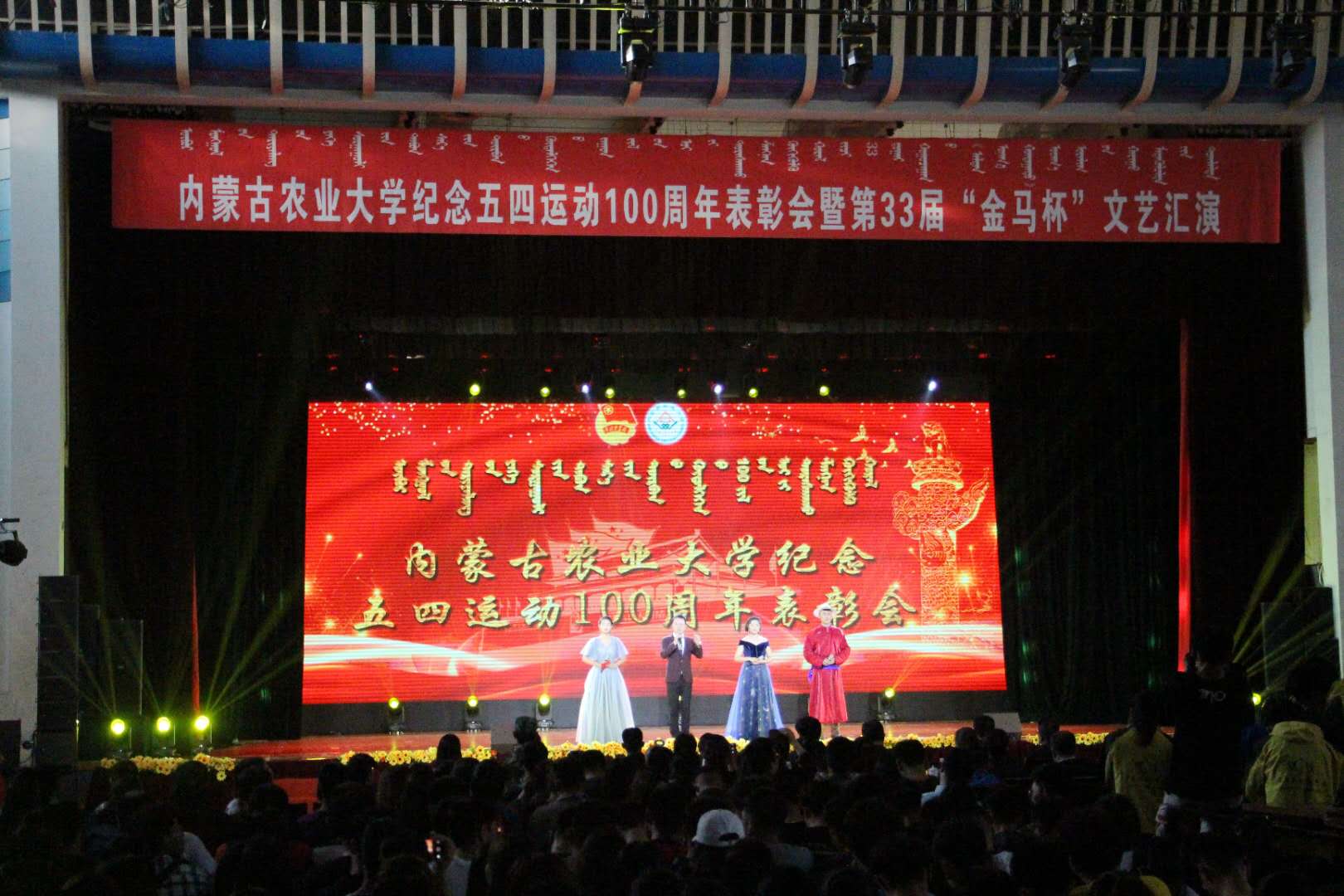 谱青年华章,续五四精神,5月9日晚6:30,公司纪念五四运动100周年表彰会暨第33届“金马杯”文艺汇演于西区文体馆隆重举行。公司党委书记王万义,党委副书记、董事长高聚林,党委副书记黄龙海,党委委员、副董事长乔彪,党委委员、纪委书记哈斯巴根,副董事长塔娜,公司相关职能处室负责人,各公司党委书记、副书记、团学干部、获奖代表以及师生代表莅临现场与近两千名员工一同观赏这场精彩纷呈的舞蹈盛宴,此次汇演共有19个公司参加。