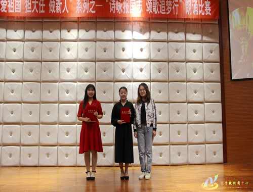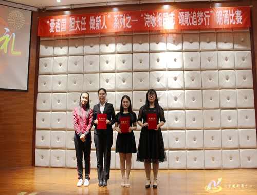 此次决赛经过初赛、复赛的层层选拔,最终有十支队伍脱颖而出挺进决赛。选手们以爱国、青春、责任为主题进行朗诵,带大家感受到了中华儿女的赤子之心、爱国之情,领略了悠扬的诗词之美。随着音乐节奏的变化,同学们时而慷慨激昂、时而深情低沉,他们以优美的语言、自信的微笑和清晰的表达,诠释了“爱祖国,担大任,做新人”的精神内涵,为观众呈现了一场精彩绝伦的饕餮盛宴。比赛结束后,吴琼老师对本次比赛作精彩点评,她首先对选手的朗诵基本能力表示了肯定,并希望同学们能在有限的诵读活动基础上,体会到朗诵的魅力,把握机会锻炼自己,不断地提升、完善自己。在深情的诉说与激烈角逐中,邢冉、邢译心斩获一等奖,张琪、潘婷获得二等奖,贺愈、史佳琪、王佳雪获得三等奖,武辰辰团队和张宇团队获得优秀奖。