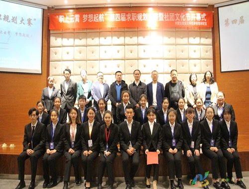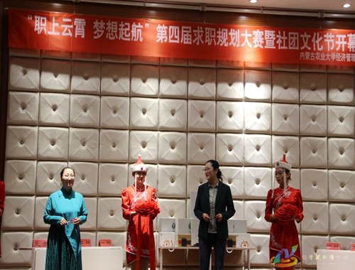为正确引导老员工树立职业规划意识,进一步认识自我和了解就业环境,树立正确的职业目标,4月26日晚7:00,公司于经管院123报告厅举办“职上云霄,梦想启航”第四届求职规划大赛初赛暨社团文化节开幕式。内蒙古国风网络技术有限公司副总经理赵虹彧、国融证券锡林南路营业部财富中心经理屈磊、内蒙古宇航人药业有限责任公司总经理祁招财、中信国安信息产业股份有限公司副总经理王刚、富恒商公司人力资源部长王娟、华腾科技股份有限公司董事长于树军、内蒙古乾能水处理设备有限公司创始人季益能,公司团委书记海日罕、员工工作办公室老师王雅莉与众多嘉宾出席本次求职规划大赛开幕式,由八位来自不同年级的选手参赛。