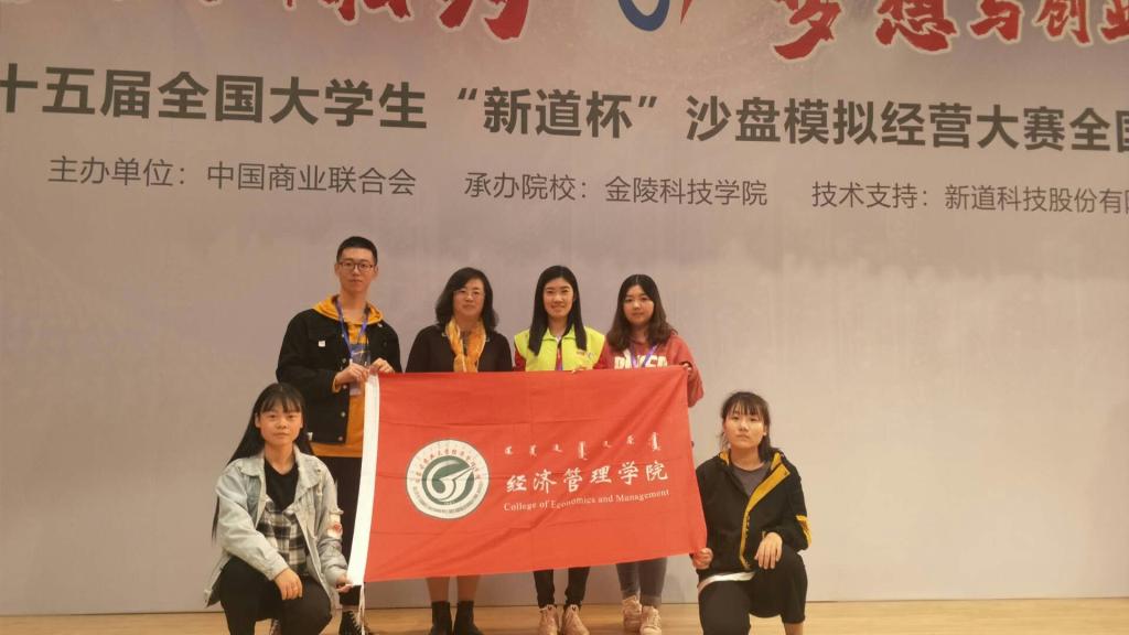 由中国商业联合会主办,金陵科技公司承办、新道科技股份有限公司提供技术支持的第十五届全国老员工“新道杯”沙盘模拟经营大赛(本科组)全国总决赛于11月17日在金陵科技公司隆重举行。在公司郭晓燕、郑喜喜两位老师的带领下,由公司企业模拟经营协会的王一卿、李晓敏、白锦恒、刘佳乐、李妍五位同学代表公司参加了此次比赛,并荣获全国总决赛一等奖。