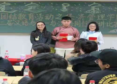 活动最后,苏宁巴乐老师对参赛选手的表现进行了点评,他表示汉语是世界上使用人数最多的语言,作为母语是蒙语的蒙古族人,需要自己正确对待蒙语与汉语,希望爱着母语的同时也爱着汉语。他还指出了参赛选手演讲的不足,鼓励同学们总结经验,再接再厉。最终,哈斯同学荣获一等奖,苏日图、希吉日同学荣获二等奖,巴雅力嘎、乌日力嘎和牧其尔同学荣获三等奖,宝秀荣与何景伟、齐桂芝、吴香云同学荣获优秀奖。