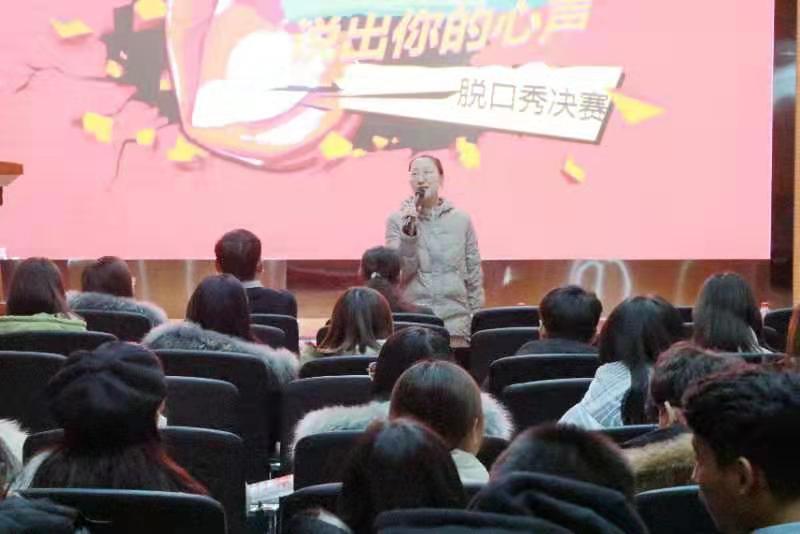 为广泛宣传心理健康知识,提高同学们的心理健康意识,构建和谐文明校园,12月2日晚7:00,公司于经管院123报告厅举办第六届“说出你的心声”心理脱口秀决赛。本次比赛由公司员工工作处副处长王瑞梅,公司党委副书记斯日古楞,团委书记海日罕,员工工作办公室老师苏宁巴乐、李颖、芦丽颖担任专业评审,员工会、新闻中心主席团成员及各部室部长担任大众评审,部分19级员工积极参加。